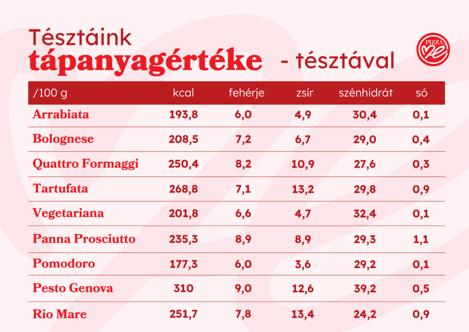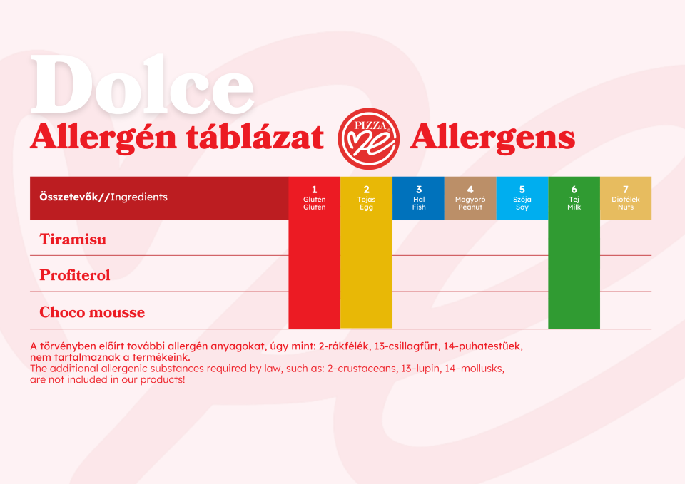 Tápérték és allergén táblázatok